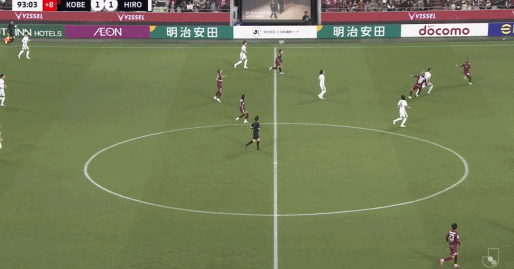 第90+4分钟,广濑陆斗禁区后点头球中柱,弹出,大迫勇也补射空门,神户胜利船2-1绝杀。