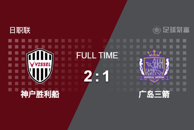 最终全场比赛结束,神户胜利船主场2-1逆转绝杀广岛三箭。