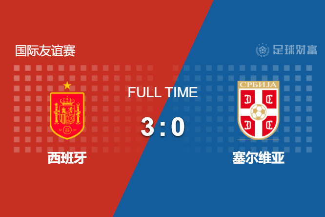最终全场比赛结束,西班牙3-0大胜塞尔维亚。