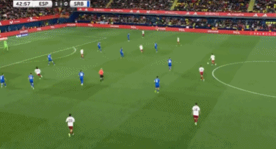 第85分钟,西班牙前场流畅配合,奥尔莫门前近距离推射被米林科维奇·萨维奇神勇扑出!