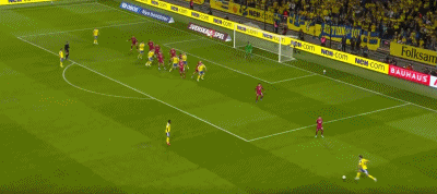 第44分钟,尼格伦开出右侧任意球,拉格比耶尔克禁区内头球入网,瑞典2-1。