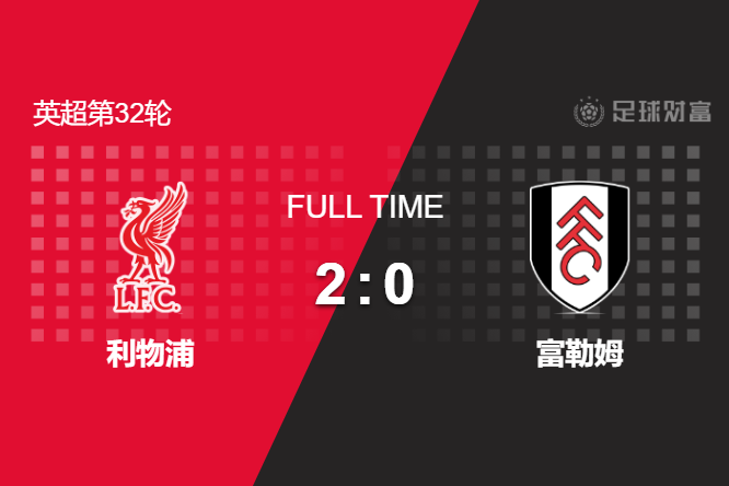 最终全场比赛结束,利物浦主场2-0击败富勒姆,结束各项赛事3连败。