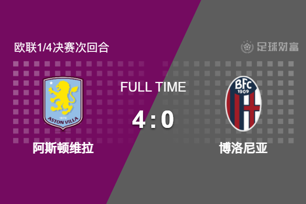 北京时间4月17日,欧联1/4决赛次回合,阿斯顿维拉主场对阵博洛尼亚。