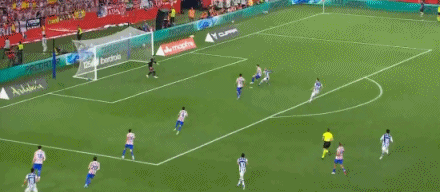 第45+1分钟,马竞门将穆索出击犯规送点,奥亚萨瓦尔点射破门,皇家社会2-1。