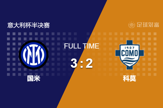 最终全场比赛结束,国米主场让二追三,总比分3-2淘汰科莫闯入意大利杯决赛。