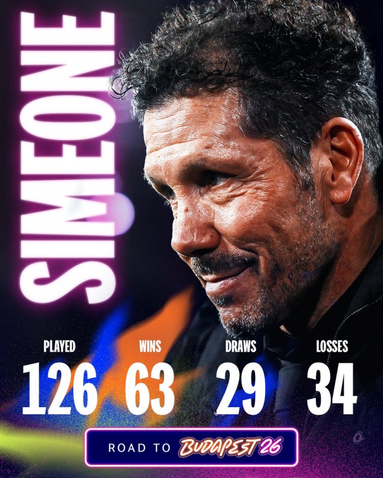 西蒙尼曾带领马竞两次率队闯入欧冠决赛(2014、2016年),可惜均负于同城对手皇马。