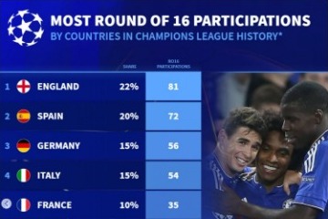| 16 | 托特纳姆热刺 | 7/8/12 | 29 |