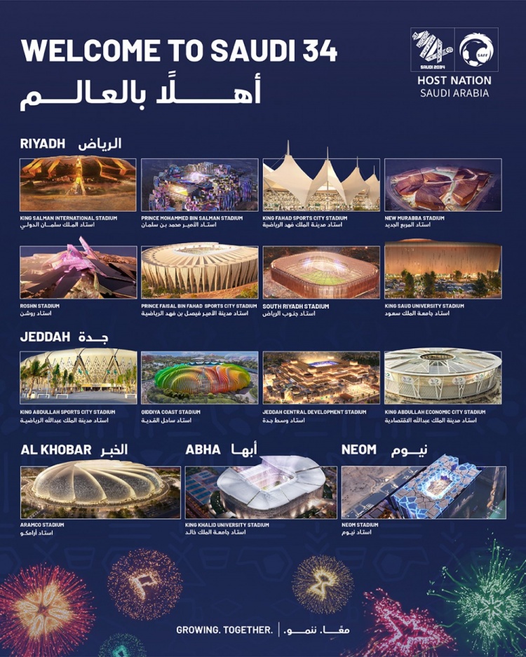 2034年沙特世界杯15座球场: