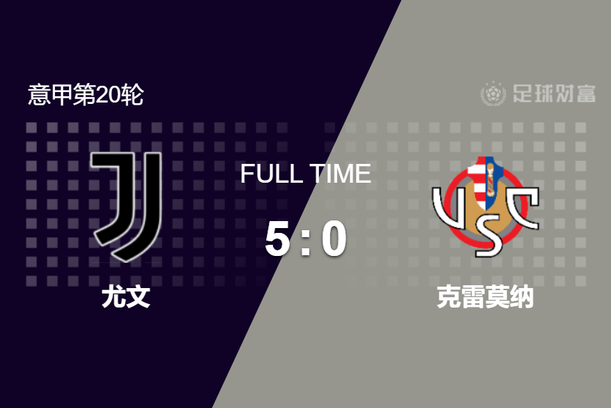 最终全场比赛结束,尤文图斯5-0击败对手。