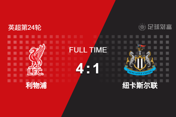 最终全场比赛结束,利物浦主场4-1逆转纽卡斯尔联。