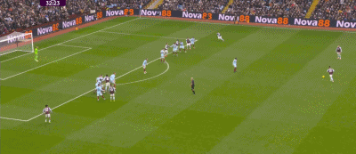 第33分钟,孔萨任意球机会插上垫射高出横梁。