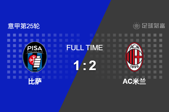 最终全场比赛结束,AC米兰客场2-1击败比萨。