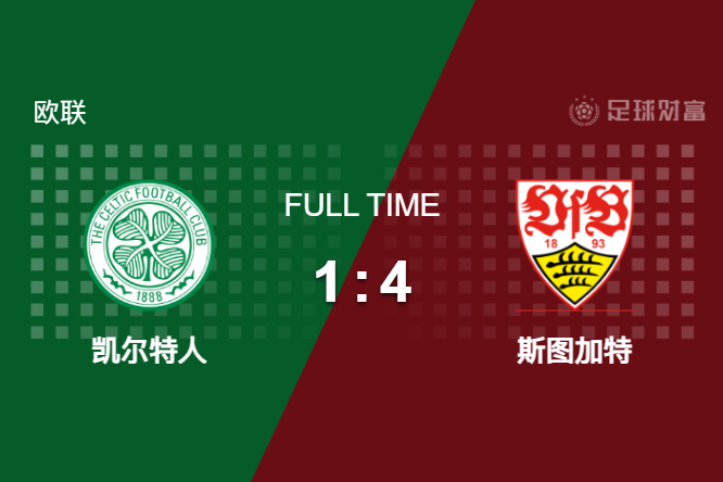 最终全场比赛结束,斯图加特客场4-1击败凯尔特人。