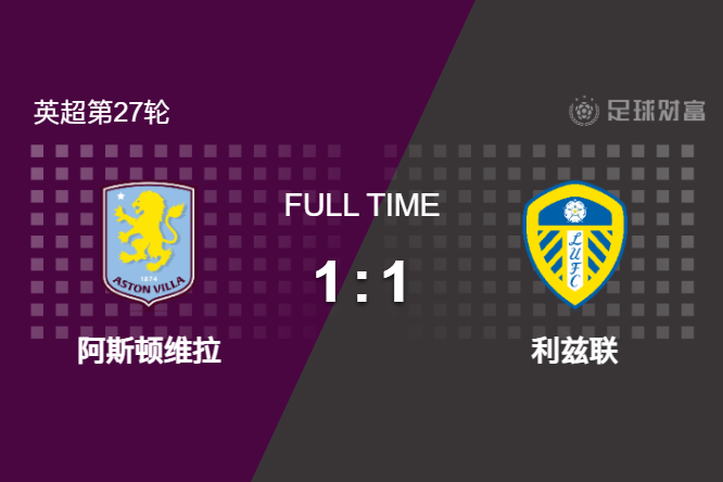 最终全场比赛结束,阿斯顿维拉主场1-1战平利兹联。