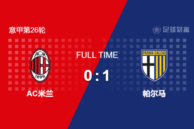 最终全场比赛结束,帕尔马客场1-0绝杀AC米兰,终结了米兰的24轮不败。