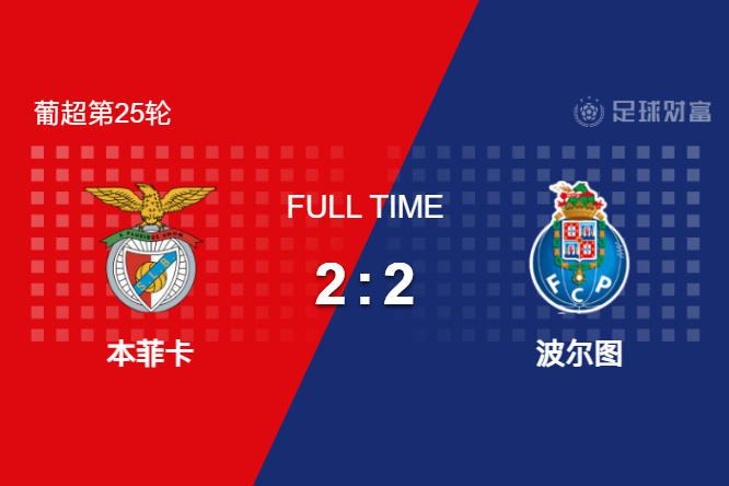 最终全场比赛结束,本菲卡主场2-2战平波尔图。