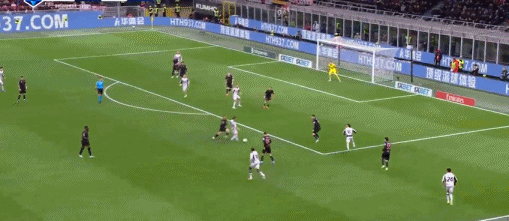 第36分钟,帕夫洛维奇禁区外凌空抽射破门,AC米兰1-0。