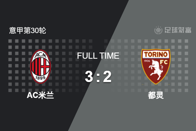 最终全场比赛结束,AC米兰主场3-2险胜都灵。
