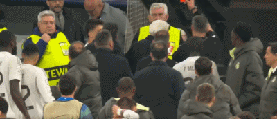 赛后皇马中场居莱尔不满裁判判罚被出示红牌。