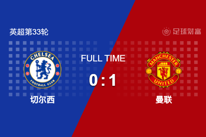 最终全场比赛结束,曼联客场1-0战胜切尔西。