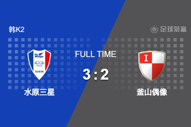 最终全场比赛结束,水原三星3-2险胜釜山偶像。