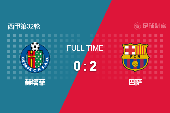 最终全场比赛结束,巴萨客场2-0击败赫塔菲,领先皇马达到11分。